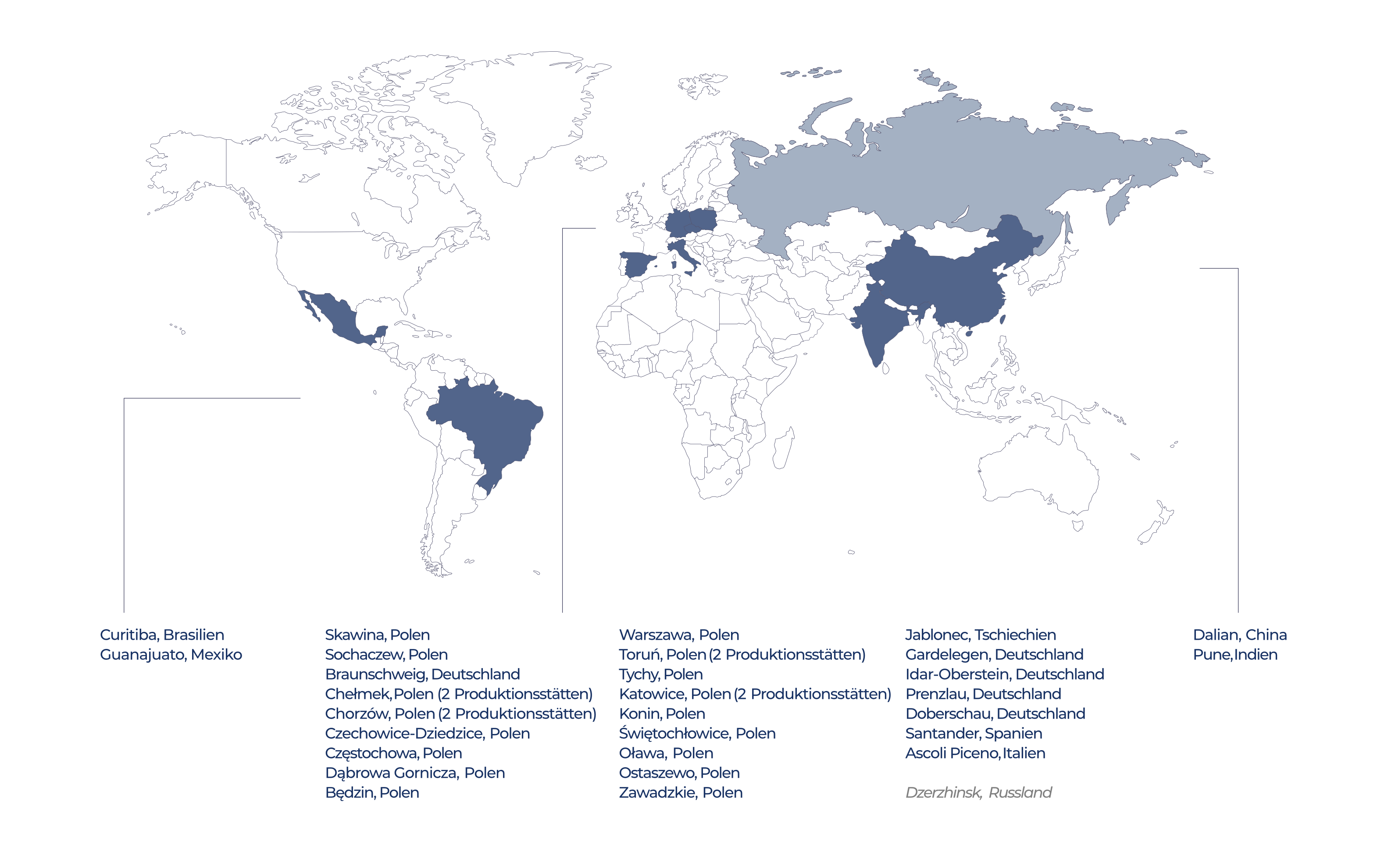 Boryszew ist die größte private Industriegruppe in Polen. Wir sind ein weltweit operierender Hersteller mit Schwerpunkt auf die Automobilindustrie, die Verarbeitung von Nichteisenmetallen und den Chemiesektor. Unsere Gruppe besteht aus 35 Produktionsstätten und 6 F&E-Zentren in Europa, Asien und Nord- und Südamerika. Unseren Erfolg verdanken wir der Leidenschaft und dem Engagement unserer Teams von mehr als 9.000 Mitarbeitern in 11 Ländern auf 4 Kontinenten.